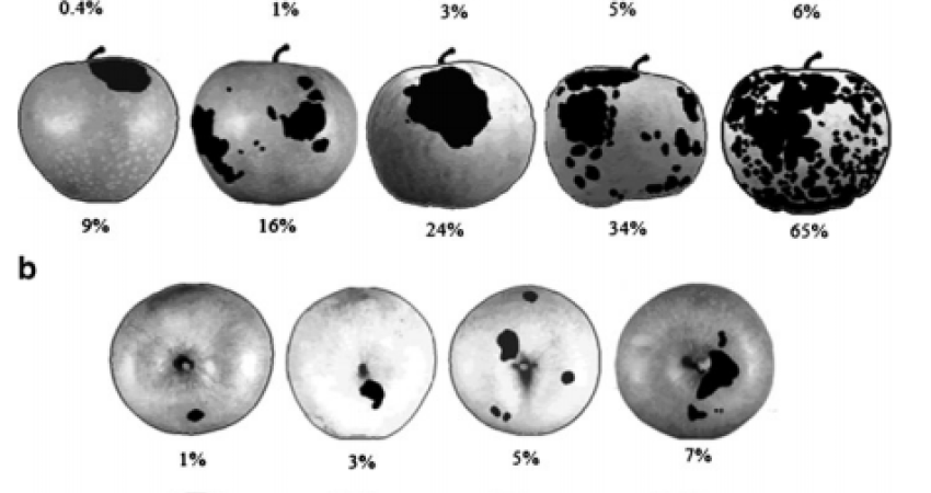 Improving sooty blotch and flyspeck severity estimation on apple fruit with the aid of standard area diagrams